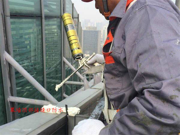 幕墙防水施工现场图: