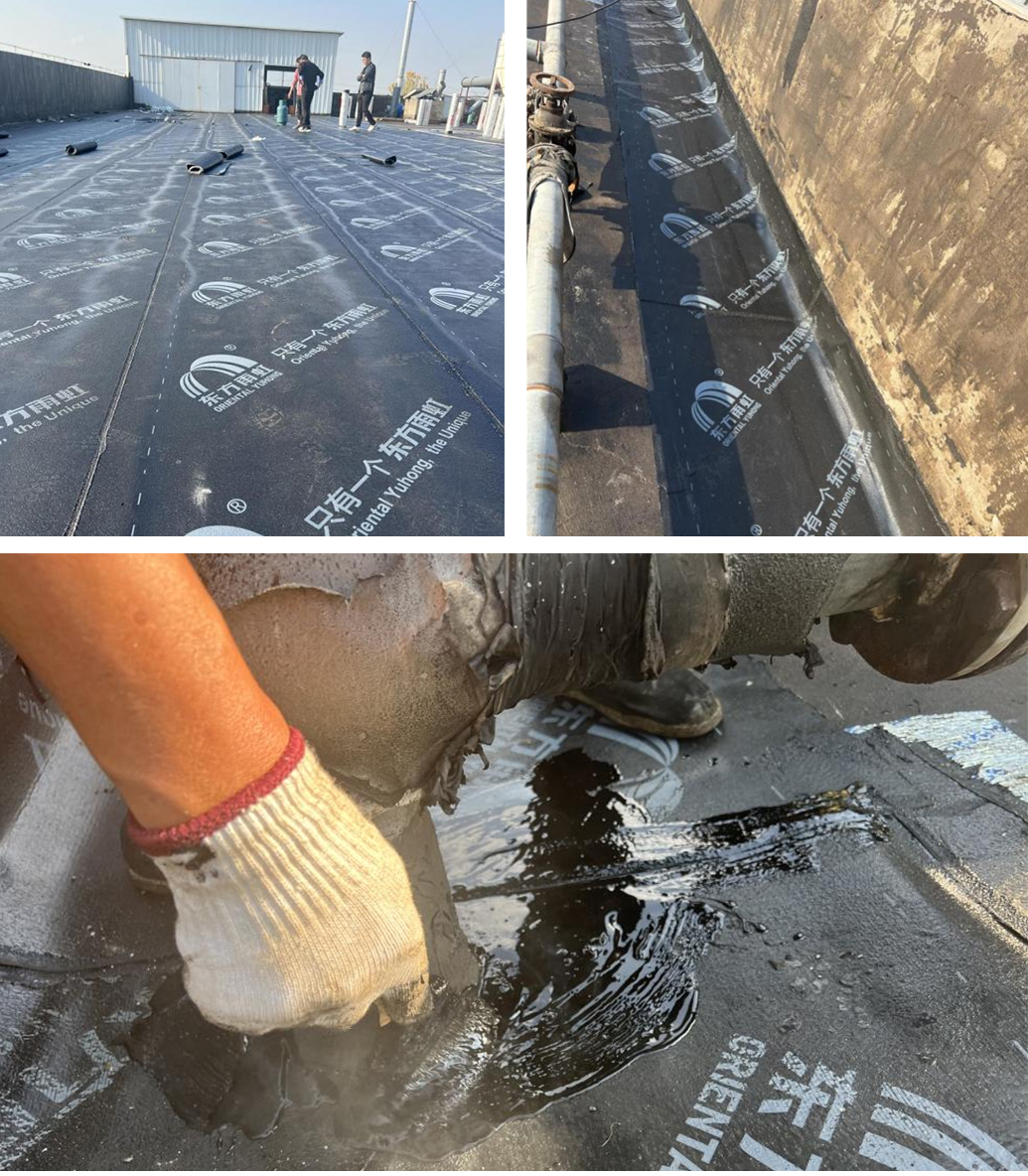 公司屋面漏水最终确定方案为铺设东方雨虹卷材及涂刷聚氨酯。具体施工方案如下: